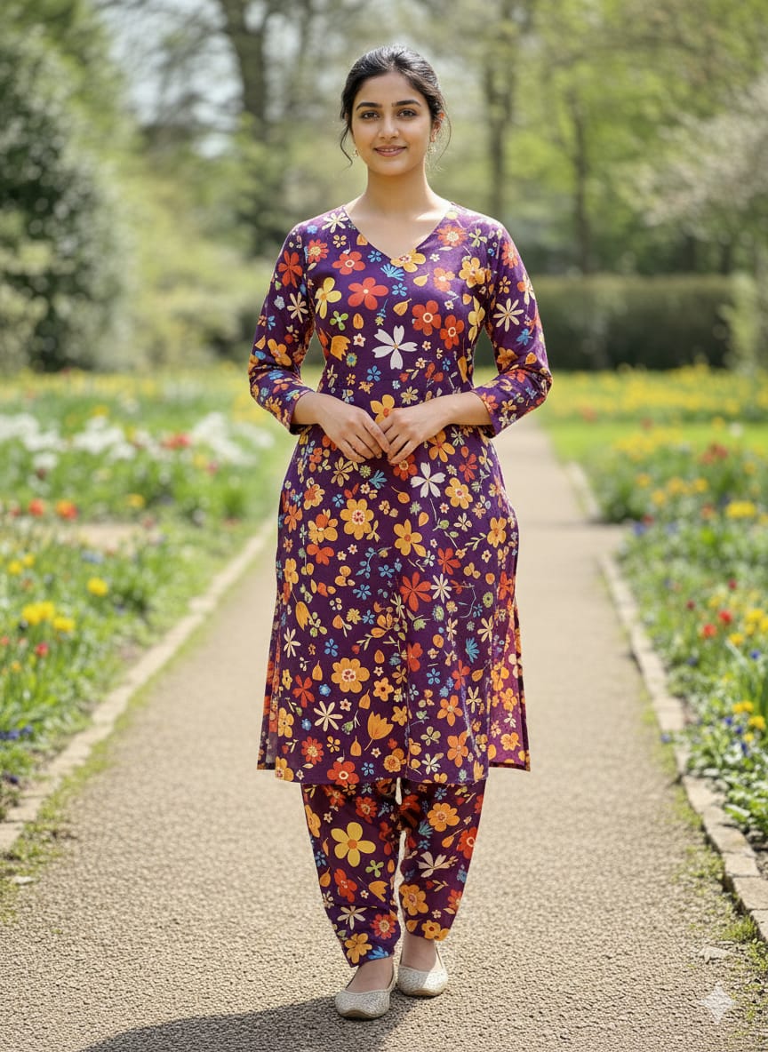This two-piece floral print outfit is a stunning choice for a comfortable and stylish look. The vibrant,...